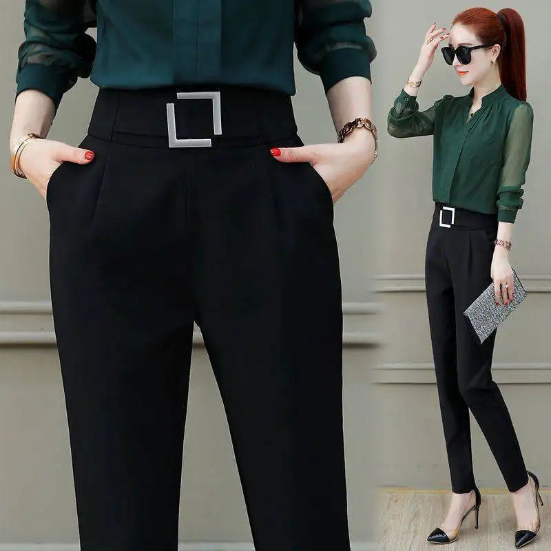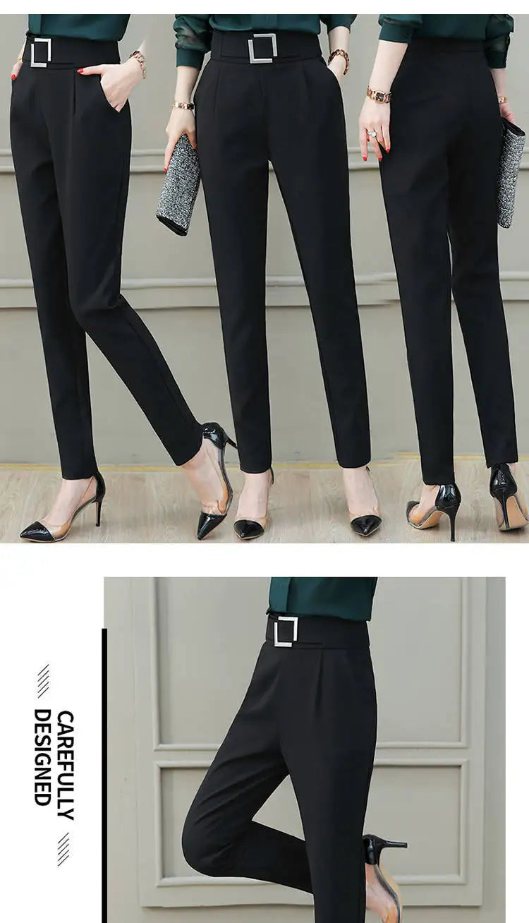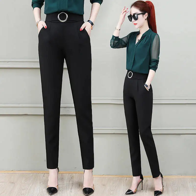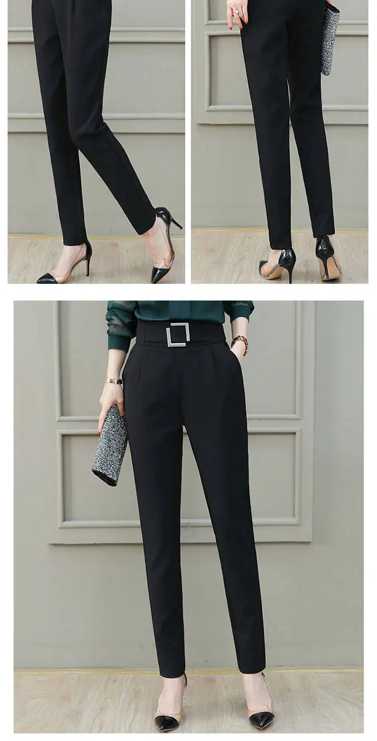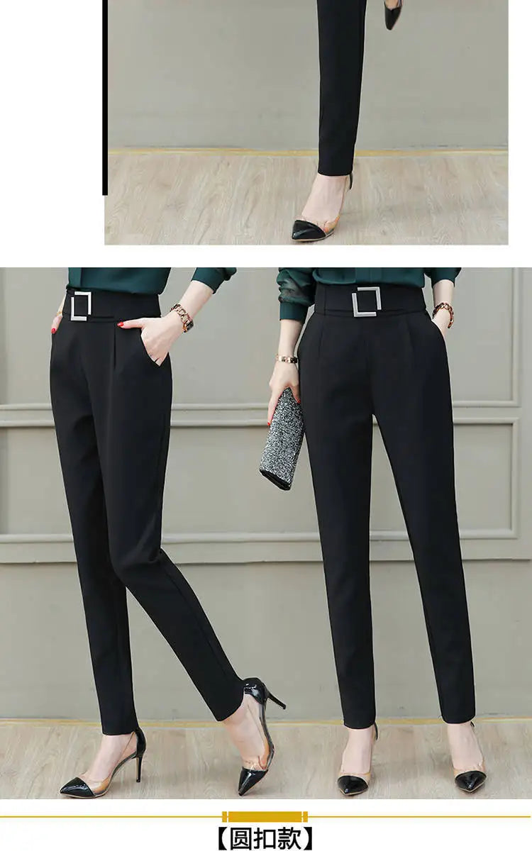 Calças femininas de alta qualidade para primavera e verão, de algodão, pretas, de cintura alta, para corrida, para mulheres, com harém, macias e versáteis