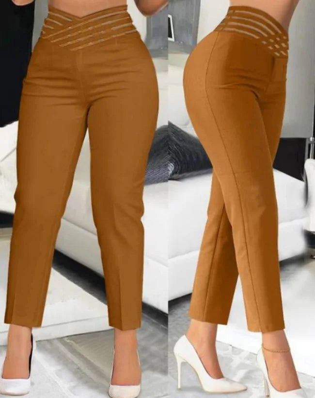 Calças femininas chiques da moda com detalhes de costura para escritório, vintage, cintura alta, zíper, calças justas femininas, calças de terno sólidas